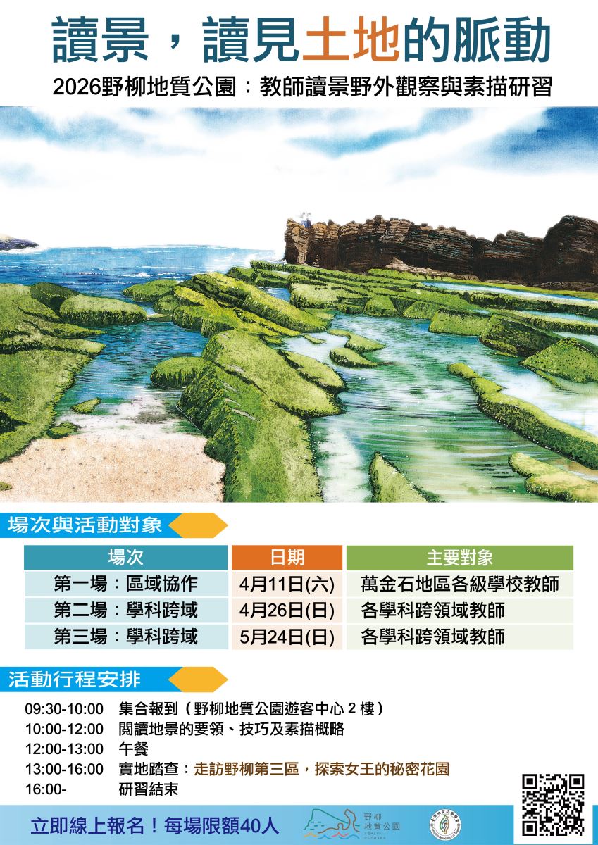 臺灣地質公園學會攜手台大地理系林俊全名譽教授,帶領全台教師走進野柳,透過觀察、探究與素描,將108課綱的「跨領域學習」轉化為真實的感動。